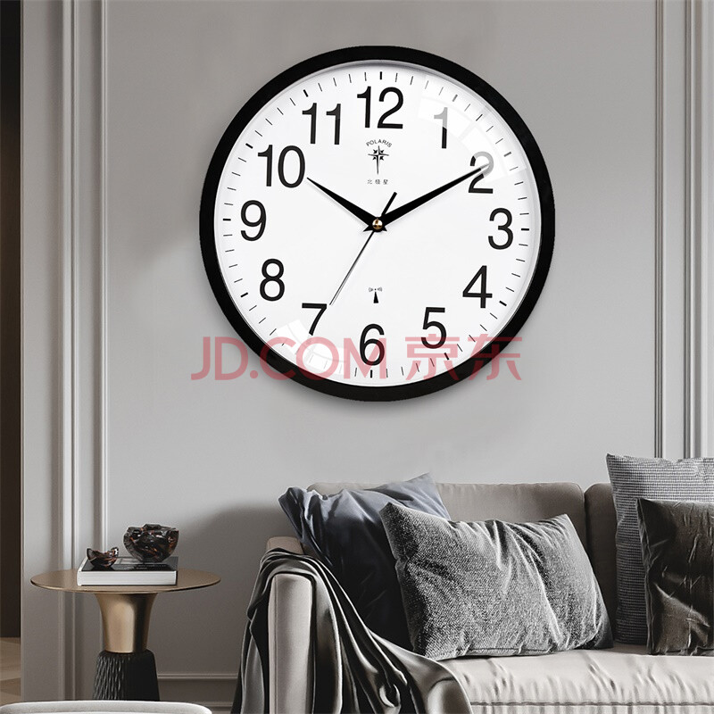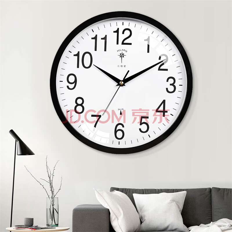 商品相册:北极星(POLARIS)挂钟 客厅时尚自动对时创意电波钟时钟智能钟表 7950黑色电波第