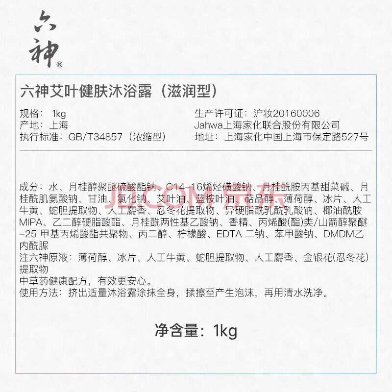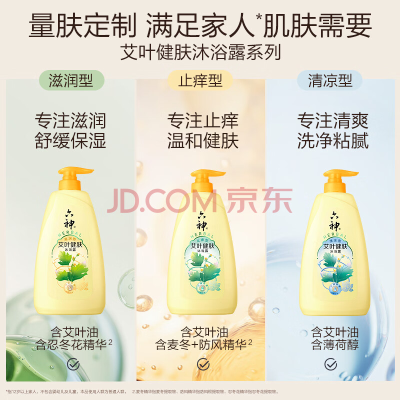 商品相册:六神沐浴露滋润套装艾叶滋润1kg+清新滋润1kg+420g保湿止痒家庭用第
