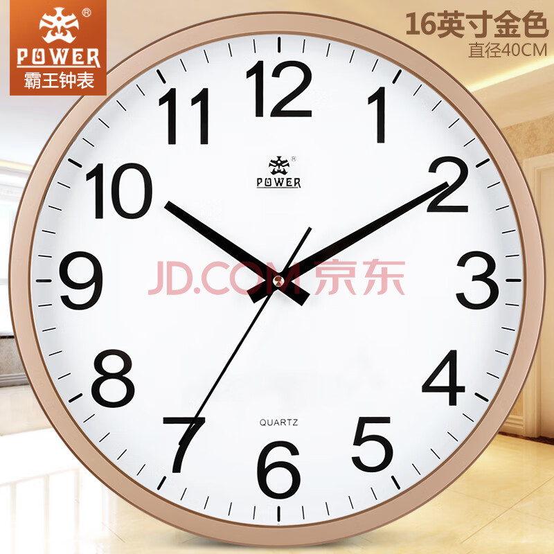 商品相册:POWER霸王钟表 客厅家用挂钟简约挂表挂墙石英钟40cm金色BW23012A第