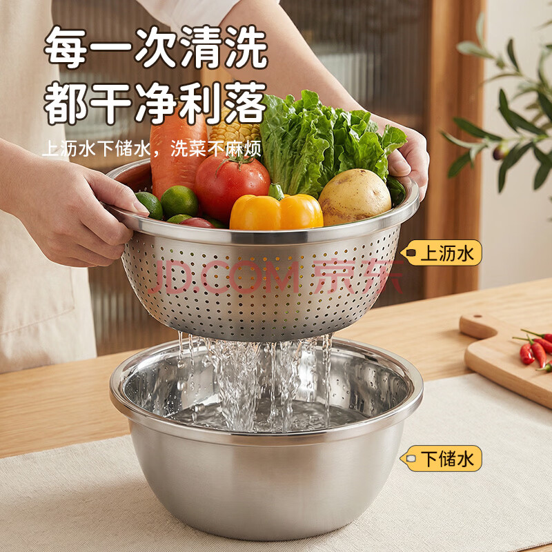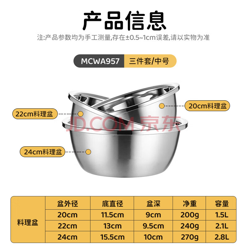 商品相册:美厨(maxcook)304不锈钢洗菜盆 加大调料盆洗菜盆和面盆套装 中号三件套MCWA957第