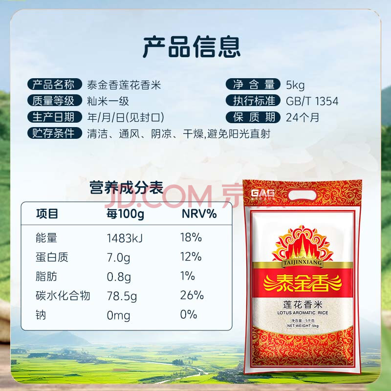 商品相册:泰金香 莲花香米 大米5Kg 茉莉香米 长粒米 香米 大米10斤第