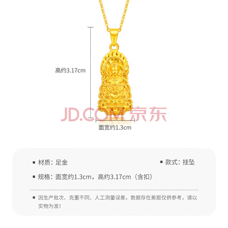 商品相册:梦金园 黄金吊坠足金火焰观音吊坠3D硬金显大转运珠不含项链第