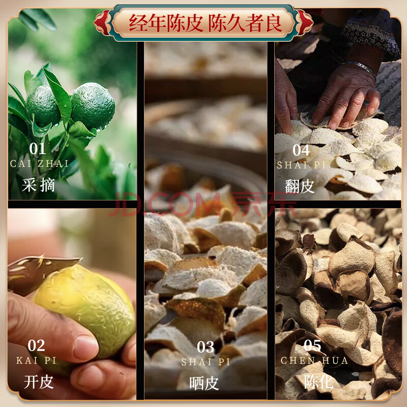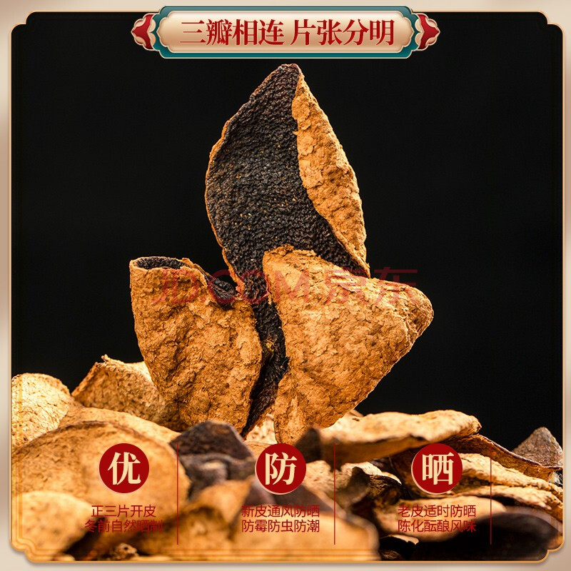 商品相册:茗杰 陈皮 老陈皮100g陈香正宗广东特产十五年陈自然生晒泡水喝礼盒装第1张/共7