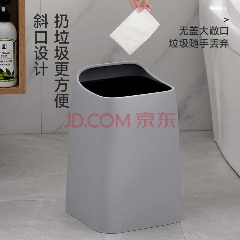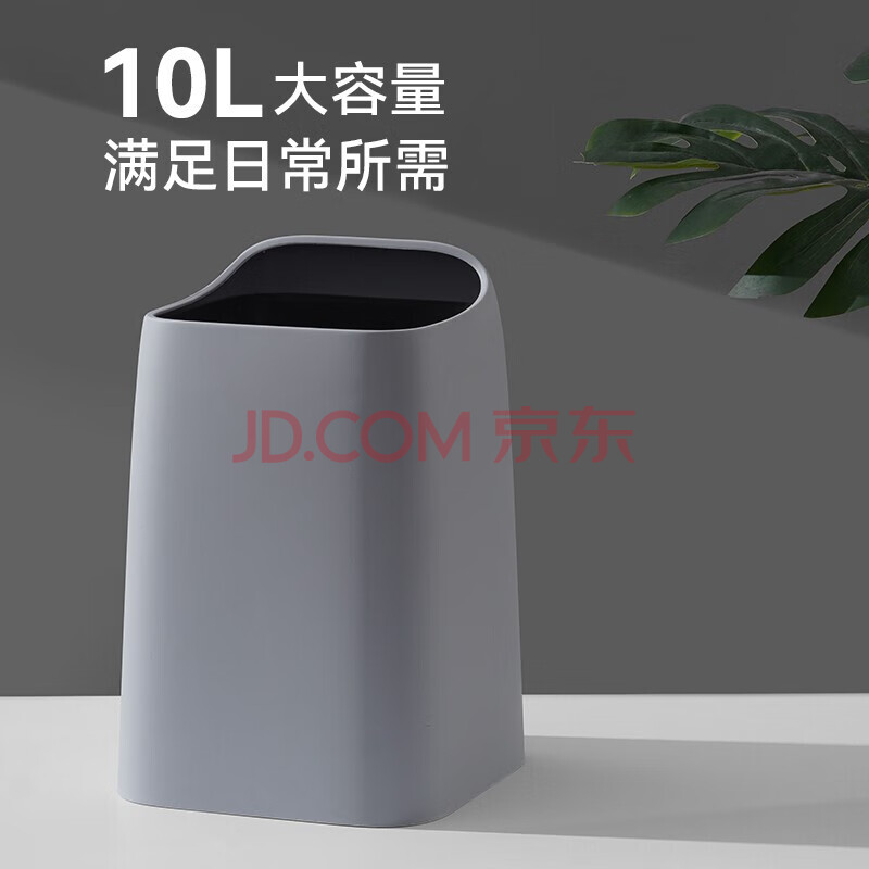 商品相册:朴厨无盖垃圾桶10L灰色两个装家用垃圾桶大号客厅厨房卫生间办公室第