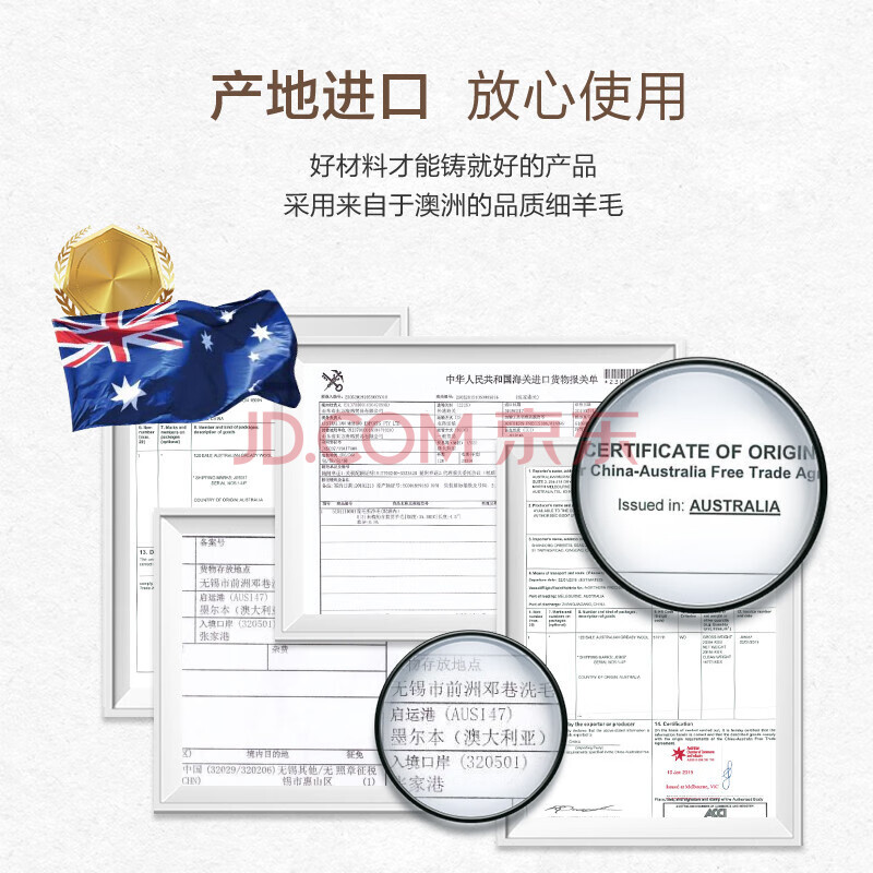 商品相册:富安娜100%澳洲进口纯羊毛被子 冬季加厚被芯 纯棉双人约8.2斤230*229cm第