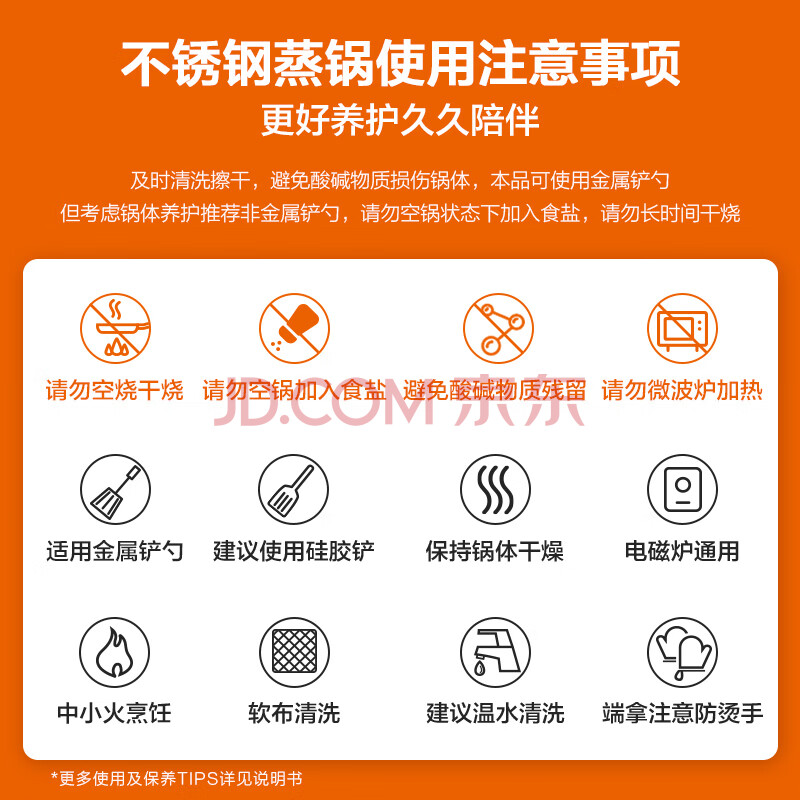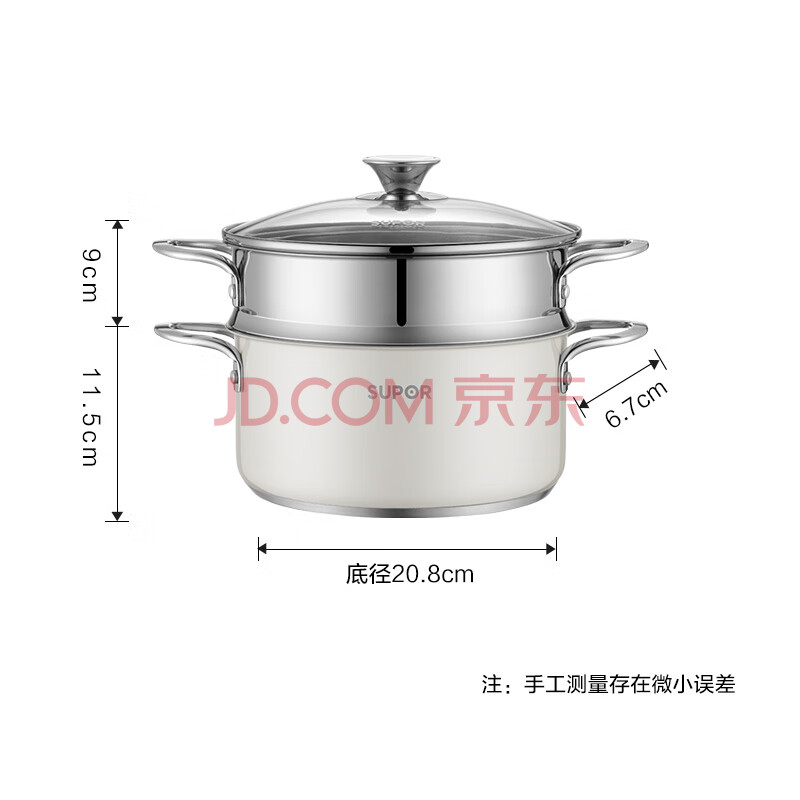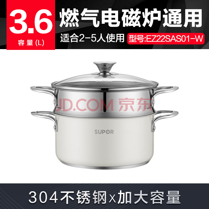 商品相册:苏泊尔SUPOR 304不锈钢双层蒸锅复底燃气电磁炉蒸笼22cm白色EZ22SAS01-W第