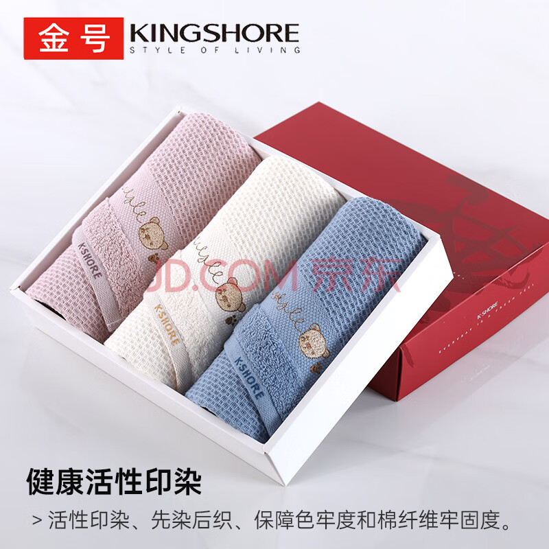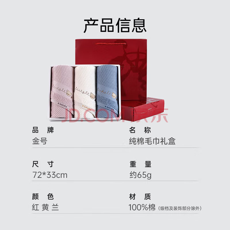 商品相册:金号毛巾礼盒 A类全棉节日福利毛巾套装 纯棉成人儿童吸水面巾三条第