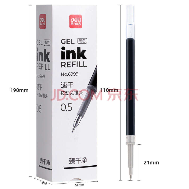 商品相册:得力(deli)按动中性笔笔芯替芯 速干按动尖锥头0.5mm学生笔芯 黑色 20支/盒6999第