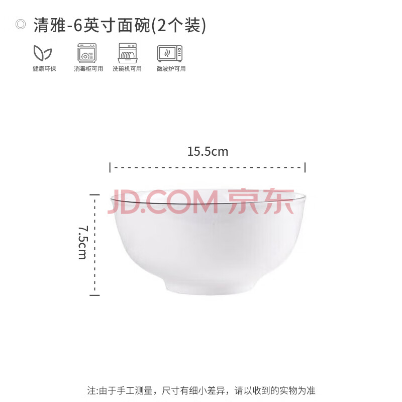 商品相册:浩雅高温釉下彩景德镇陶瓷餐具汤碗大饭碗简约面碗清雅6英寸面碗2个装第