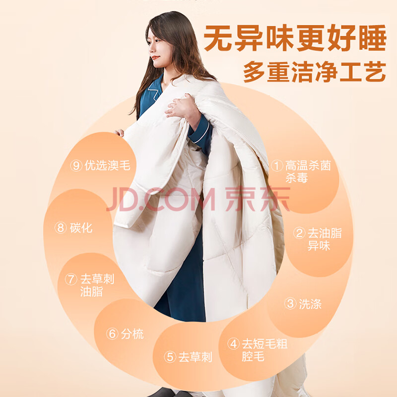 商品相册:富安娜100%澳洲进口纯羊毛被子纯棉面料春秋被双人四季被4.4斤203*229cm第