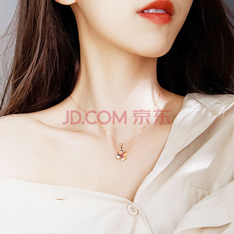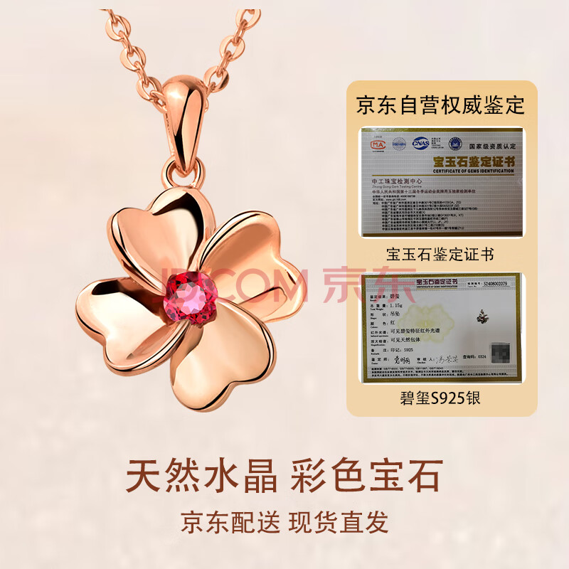 商品相册:JOLEE项链玫瑰金色S925银碧玺吊坠时尚彩宝饰品送女士节日礼物一物一证第