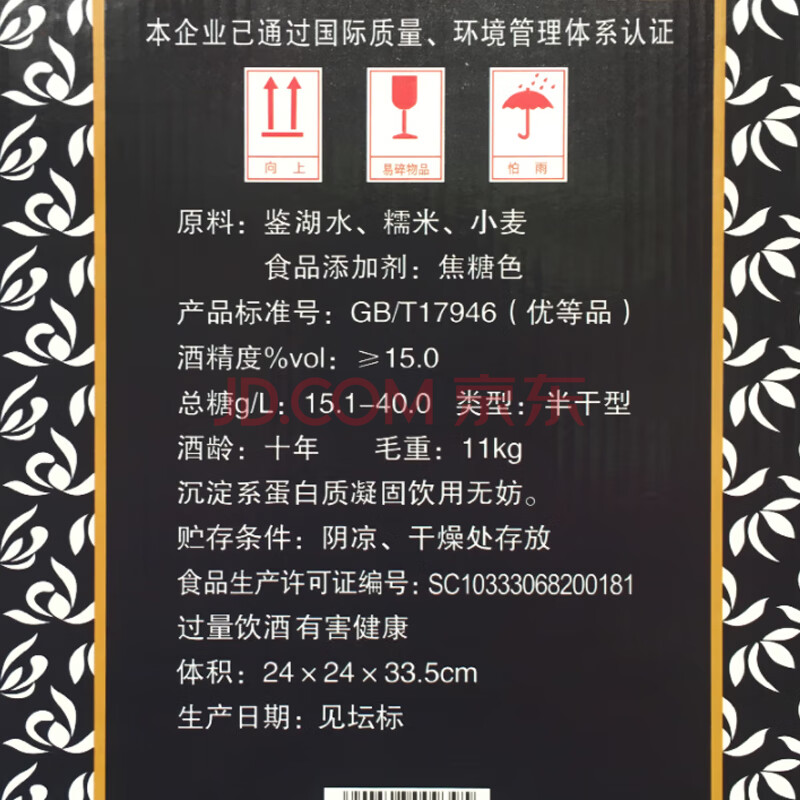 商品相册:女兒红 库藏十年 半干型 绍兴黄酒 5kg 单坛装 源头直发 包邮第