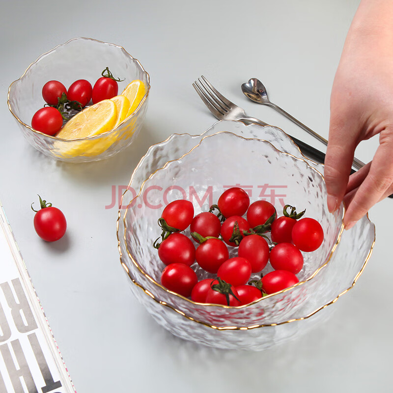 商品相册:餐将军 3件套沙拉碗金边玻璃碗套装玻璃果盘甜品碗沙拉碗水果盘第