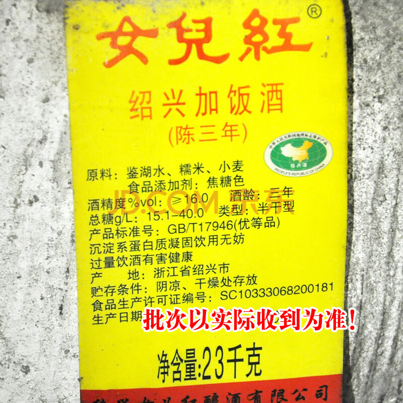 商品相册:女兒红绍兴黄酒 三年陈加饭酒16度 半干型 23kg 坛装 源头直发第