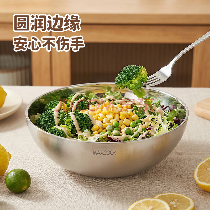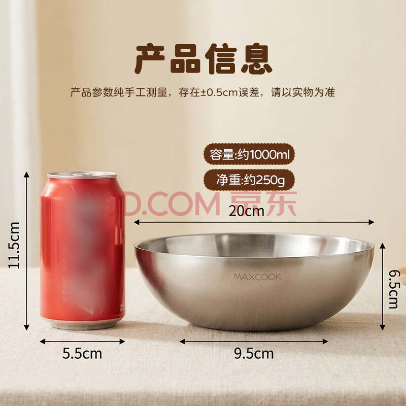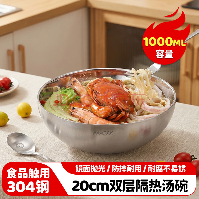 商品相册:美厨(maxcook)304不锈钢碗 汤碗双层隔热 加厚日式碗餐具面碗20cm MCWA806第