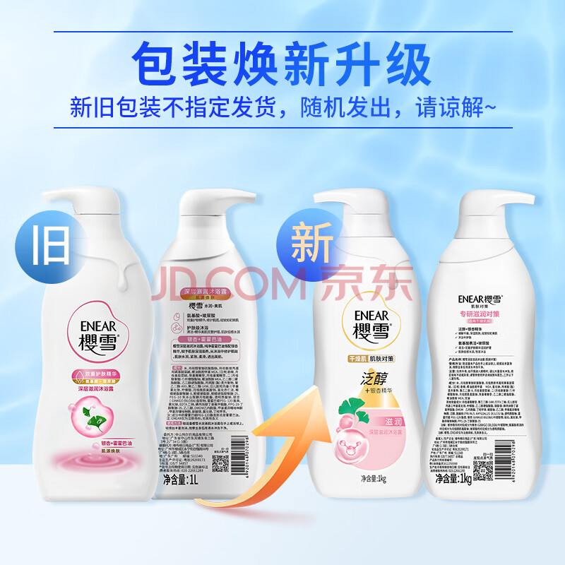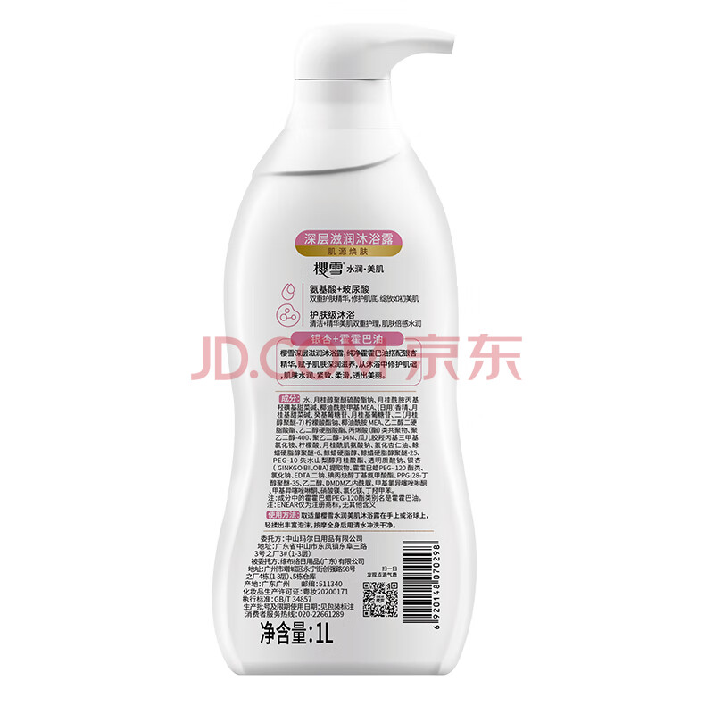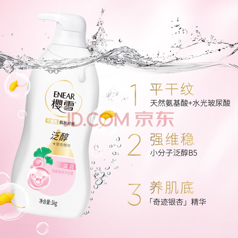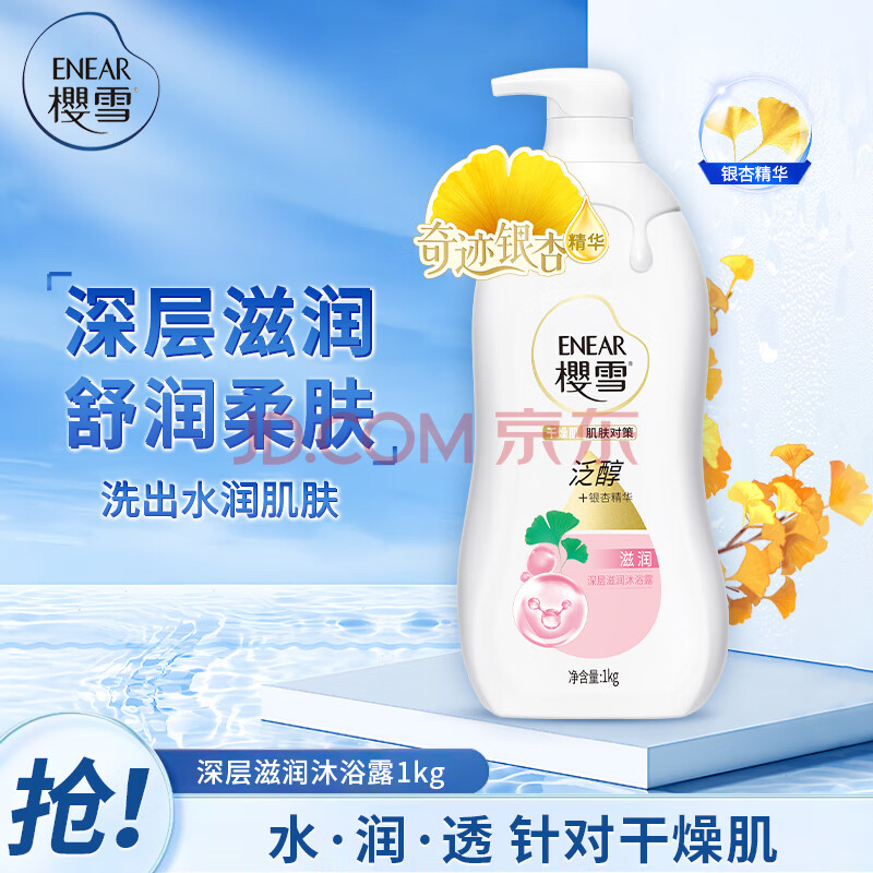 商品相册:樱雪(ENEAR)保湿沐浴露 氨基酸玻尿酸深层滋养沐浴乳 1kg银杏配方第