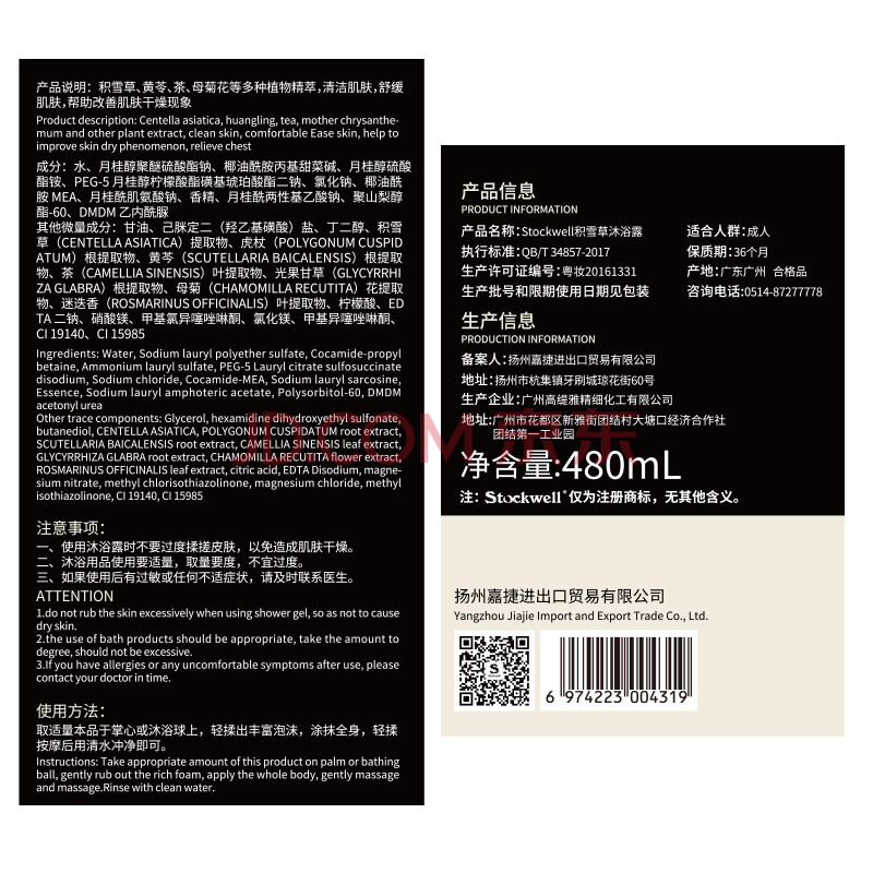 商品相册:Stockwell男士沐浴露洗发水套装 沐浴乳去屑洗发露洗护套装男女通用480ml*2第