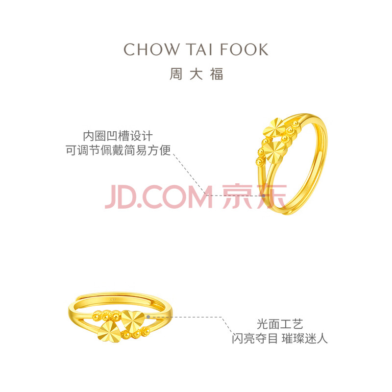 商品相册:周大福心心相守黄金戒指女爱心(工费160)约1.95g EOF46生日礼物第