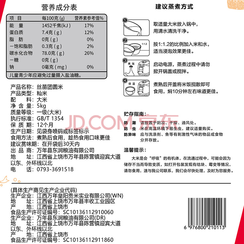商品相册:万年贡 丝苗团圆米 优选江西丝苗米大米 煲仔饭专用米 当季新米 10斤第
