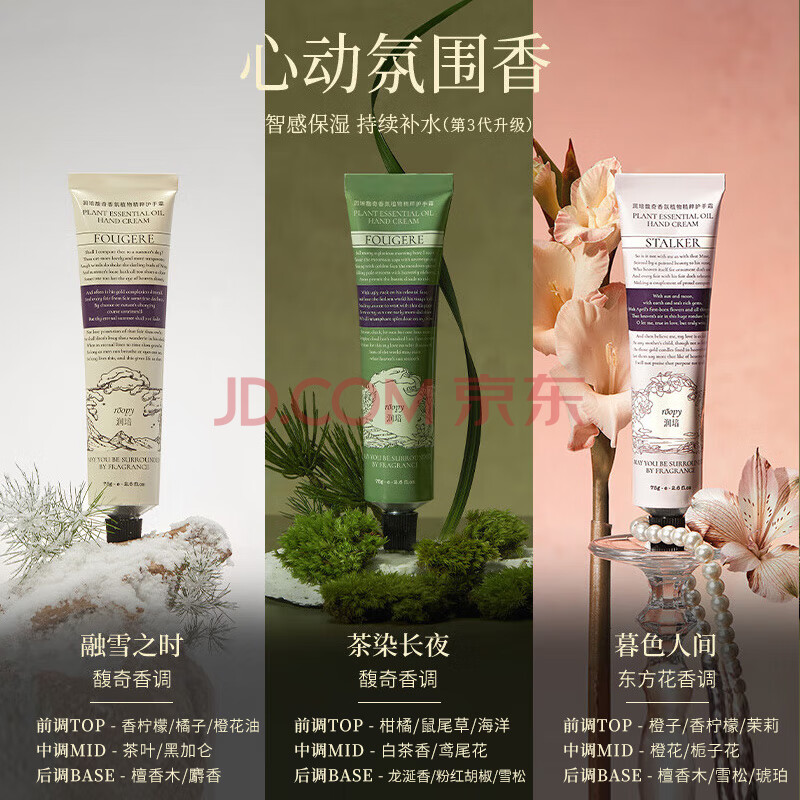 商品相册:润培护手霜(融雪+茶染+暮色)清爽保湿补水生日礼物送女生75g*3支第