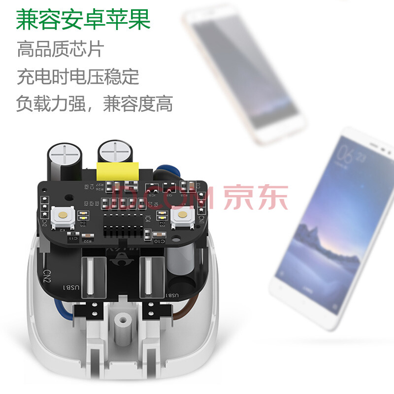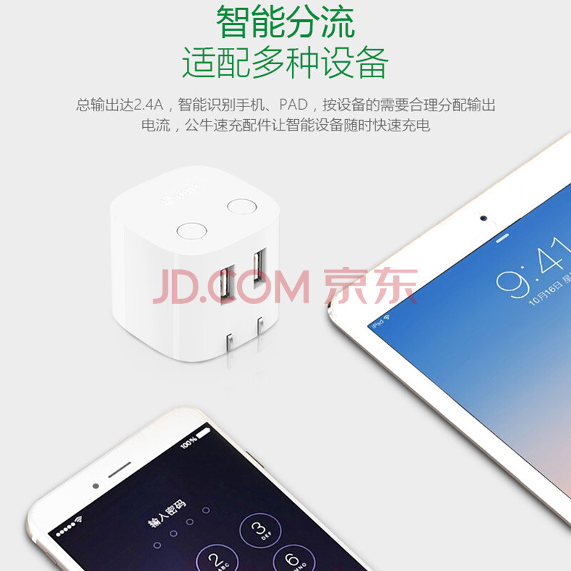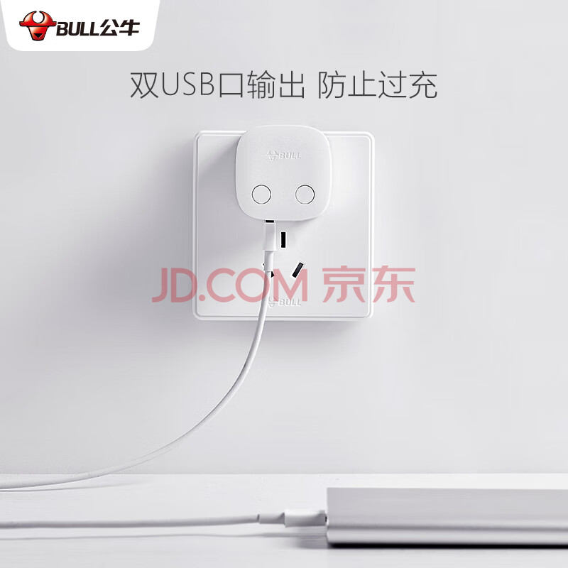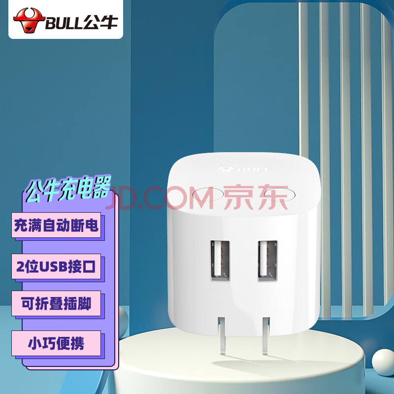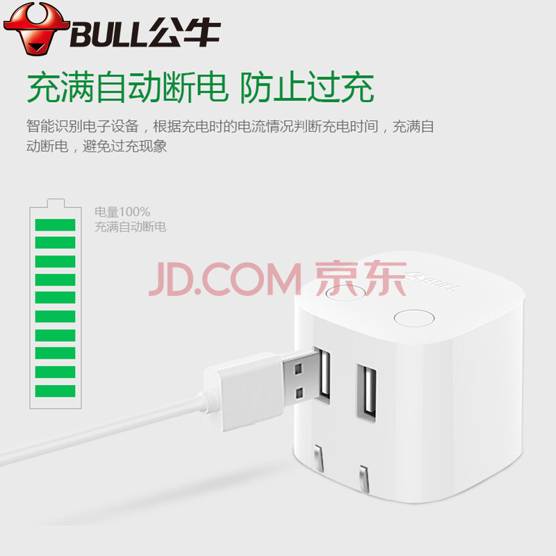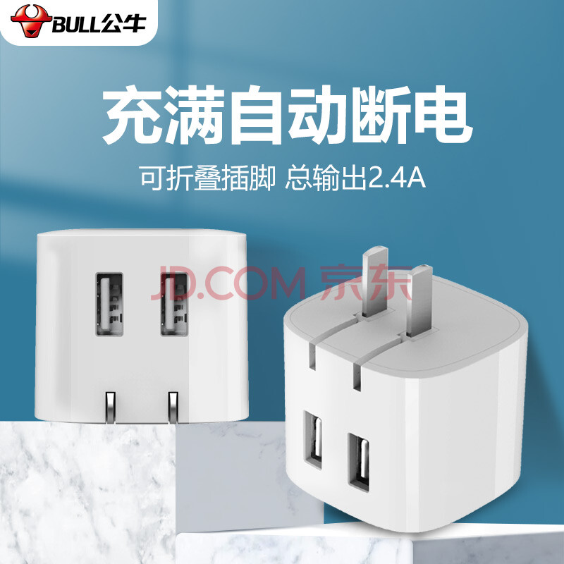 商品相册:公牛(BULL)U212T自动防过充插头/自动断电充电器/双USB接口总输出2.4A充电头/可折叠插脚第
