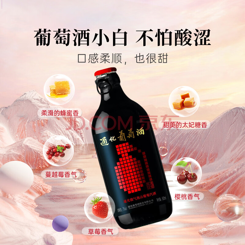 商品相册:通化微气泡起泡酒7%vol 葡萄酒 500ml 单瓶 红酒果酒微醺送礼第