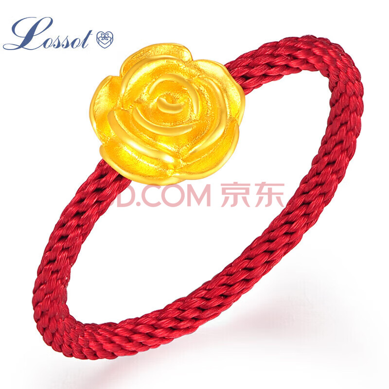 商品相册:Lossot足金玫瑰花黄金戒指女3D硬金转运珠编织红绳指环送女友生日礼物第