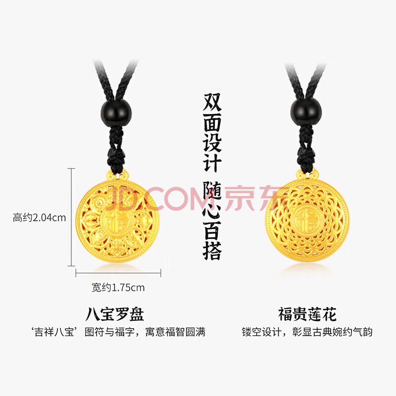商品相册:梦金园黄金吊坠足金八宝罗盘莲花吊坠生日送女友第