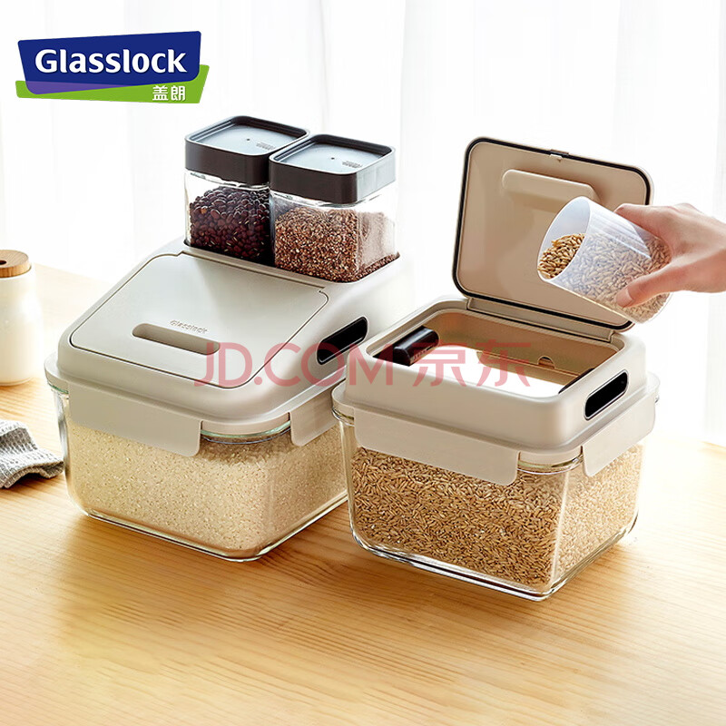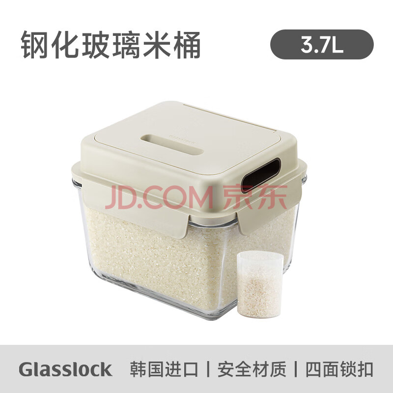 商品相册:GLASSLOCK米桶防虫储米箱厨房密封玻璃进口杂粮收纳桶大容量防潮面桶3.7L第1张/共5