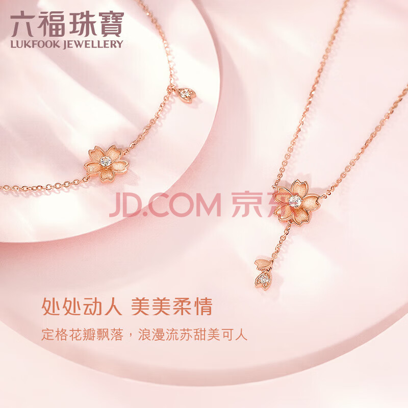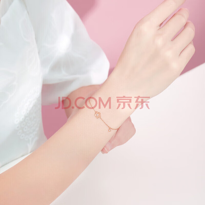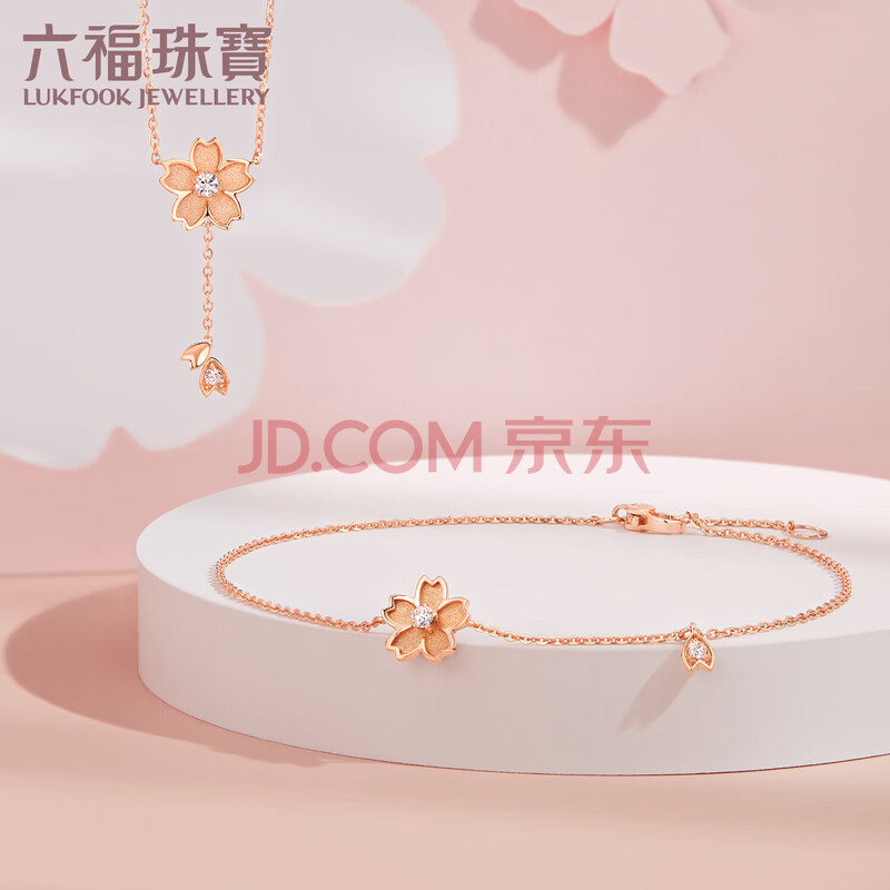 商品相册:六福珠宝 18K金Dear Q樱花钻石手链 16.5cm-共4分/红18K/约0.87克第1张/共7