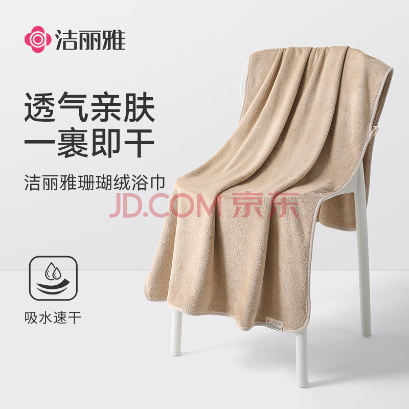 商品相册:洁丽雅浴巾A类不易掉毛成人家用亲肤柔软吸水速干酒店级大浴巾 卡其色第