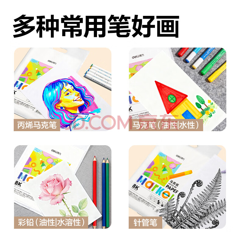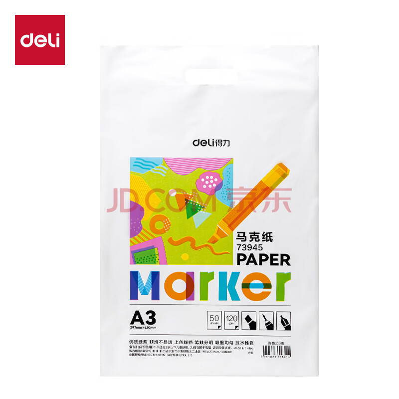 商品相册:得力(deli)50张A3-120g马克纸马克笔专用纸儿童绘画动漫建筑设计画图用纸手绘漫画纸第
