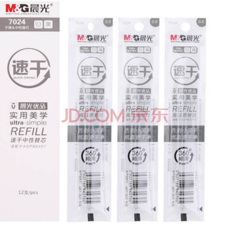 商品相册:晨光文具 7024A GR670G7笔芯0.5黑 速干头替芯水笔替芯中性笔芯第
