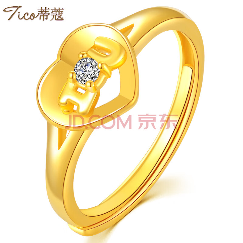 商品相册:蒂蔻(Tico)时尚足金999爱心形黄金戒指女3D硬金桃心活口女戒指环生日礼物第