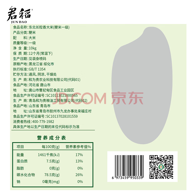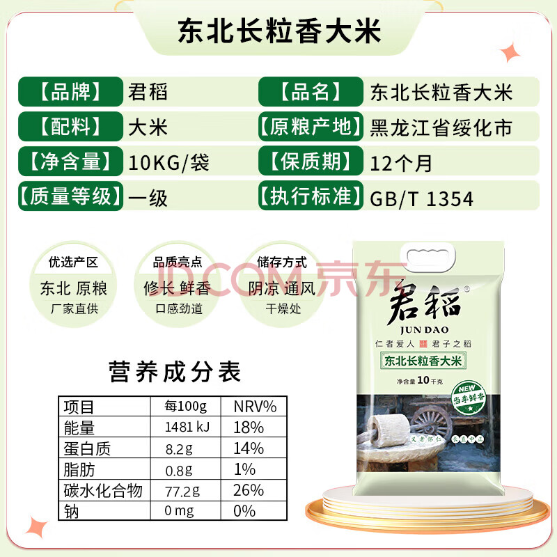 商品相册:君稻 长粒香大米10kg 东北大米20斤 京东自营 年货送礼第