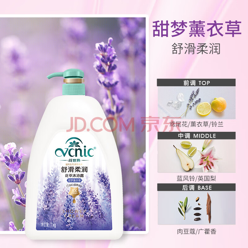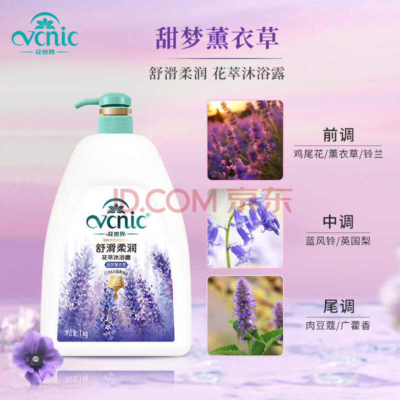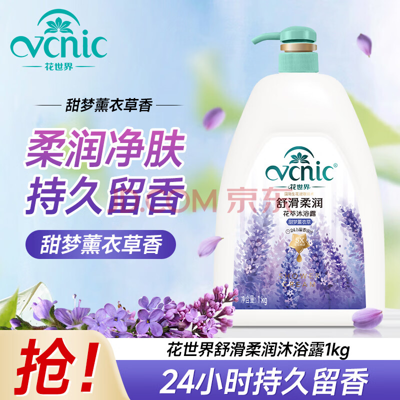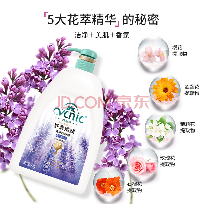 商品相册:花世界(VCNIC)舒滑柔润沐浴露 大瓶男女通用 持久留香保湿易冲洗 1kg第