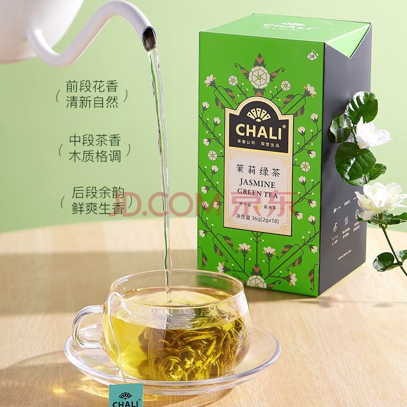 商品相册:茶里 茉莉花茶36g 冷泡茶 茶包 茉莉绿茶 袋泡茶18包/盒第
