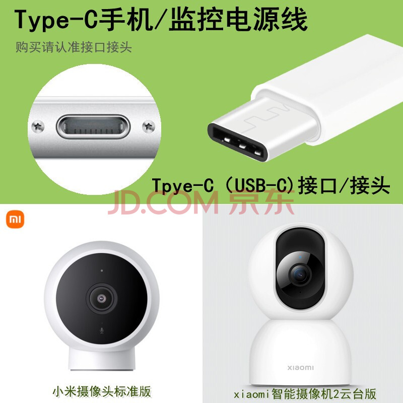 商品相册:轩邑 适用小米2云台版/C500/C700/3/3pro/标准2K/室外摄像头华为监控延长线电源线type-c充电线 8米第