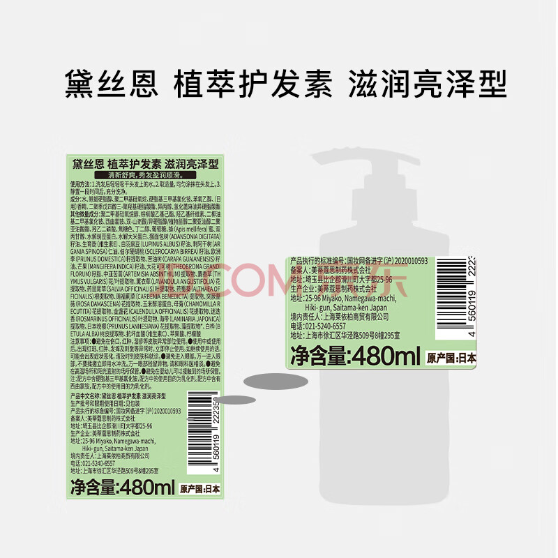 商品相册:黛丝恩植萃滋润亮泽护发素480ml(滋养呵护/补水保湿/改善受损)第