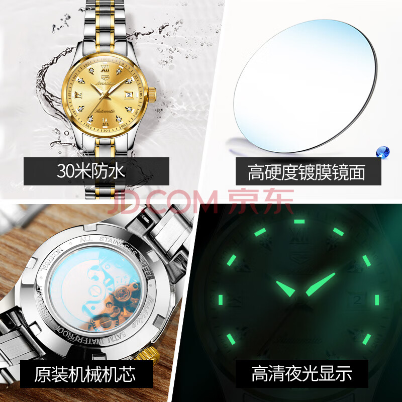 商品相册:金仕盾(JIN SHI DUN)瑞士认证品牌女士手表新款全自动机械表品牌腕表生日送礼京东自营第