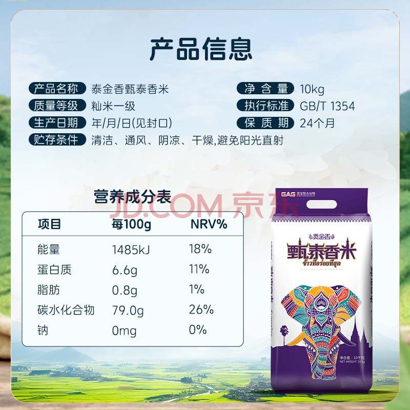 商品相册:泰金香 甄泰香米 大米10Kg 茉莉香米 长粒米 香米 大米20斤第