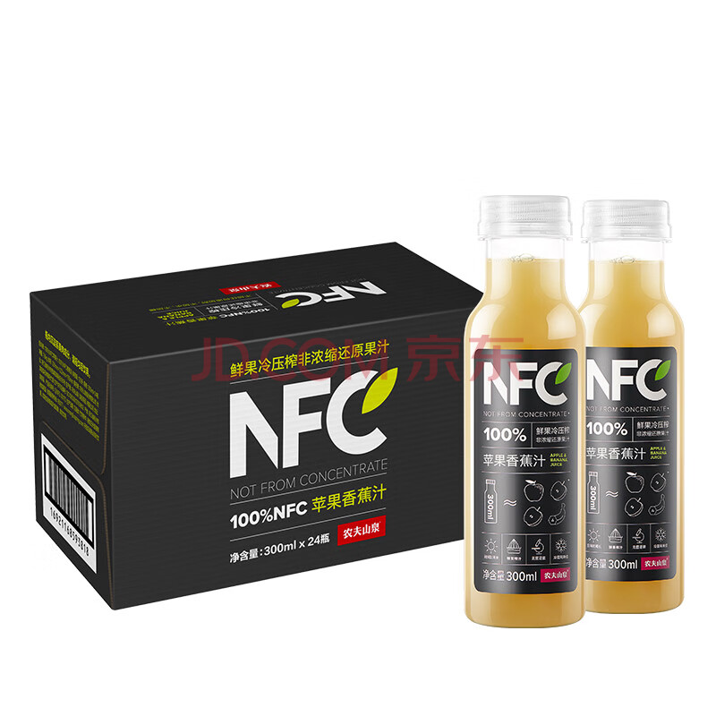 商品相册:农夫山泉100%纯果汁NFC苹果香蕉混合汁300ml*24瓶整箱鲜果冷压榨礼盒第