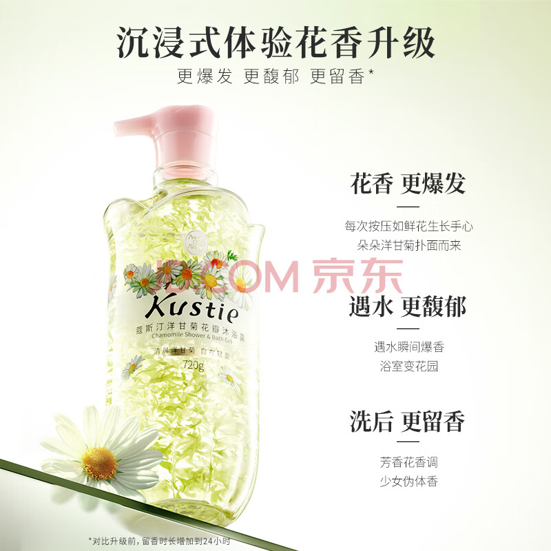 商品相册:蔻斯汀(Kustie)Kustie蔻斯汀新升级洋甘菊花瓣沐浴露720g 香氛洗浴滑嫩保湿第