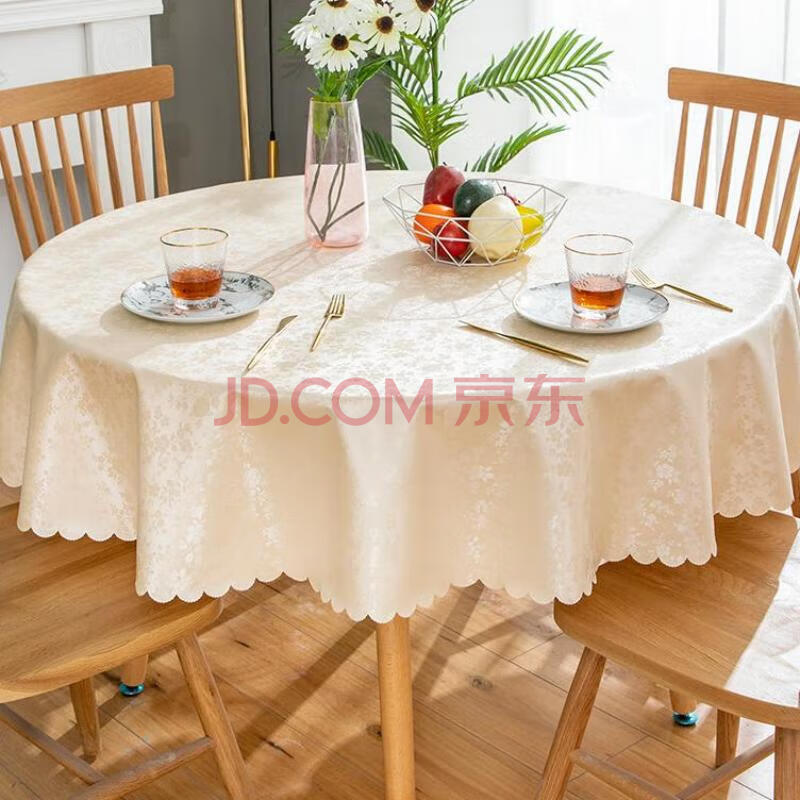 商品相册:梦蜓 圆桌布欧式防水防油防烫免洗圆形餐桌布圆桌台布餐桌垫香槟色第