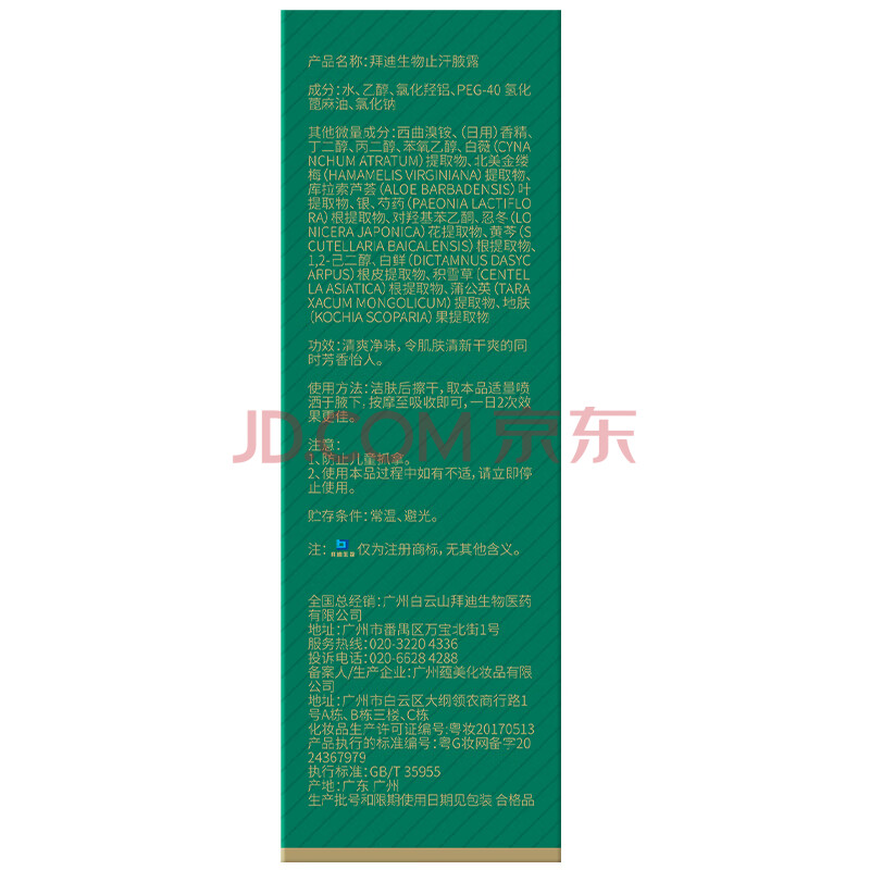 商品相册:拜迪生物白云山腋露狐臭喷雾汗臭腋臭喷剂30ml 腋下止汗香体露男女士专用第