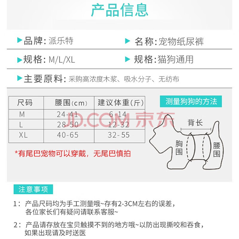 商品相册:派乐特 宠物猫咪母狗狗生理裤尿不湿泰迪卫生巾姨妈月经裤纸尿裤M10片第