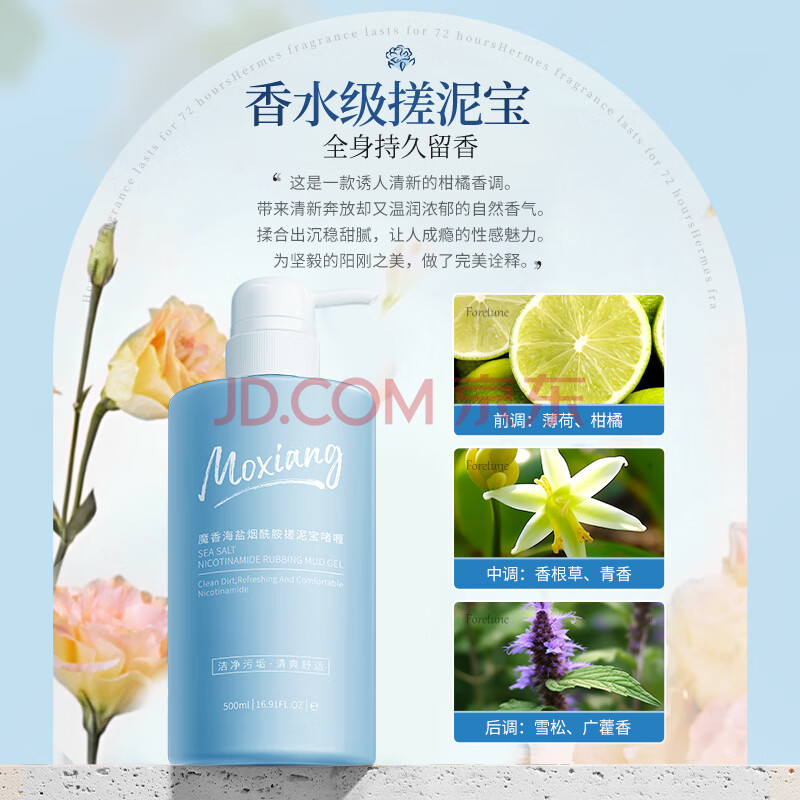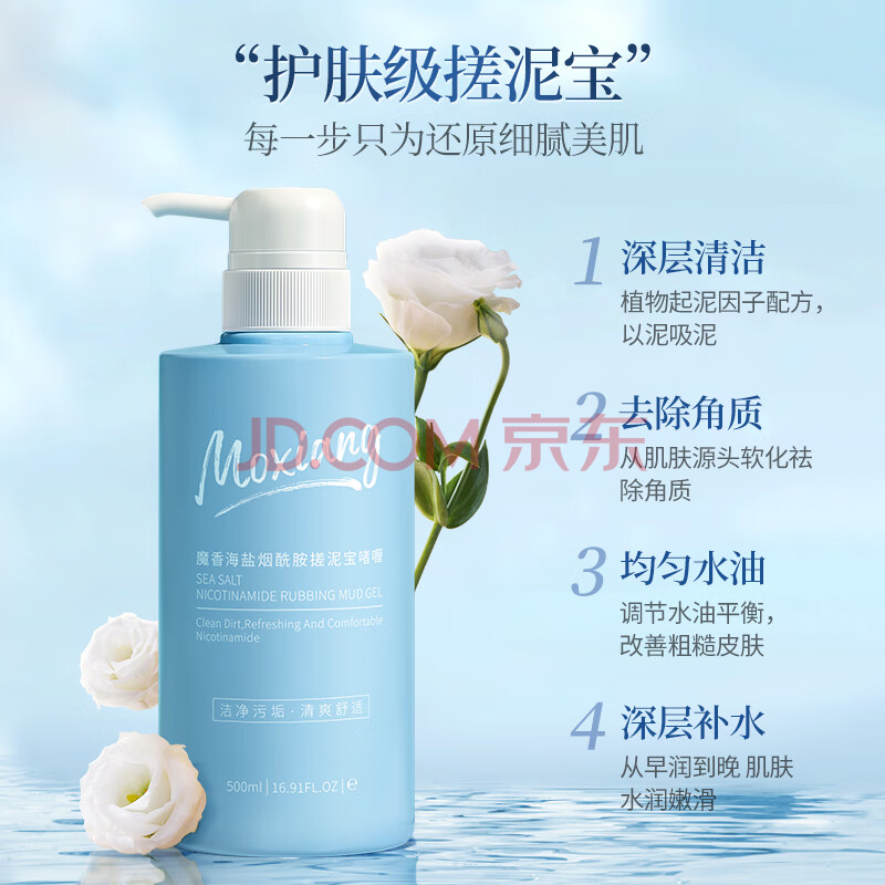 商品相册:魔香海盐搓泥宝啫喱500g搓澡泥男女士全身去角质死皮沐浴露浴盐磨砂膏第