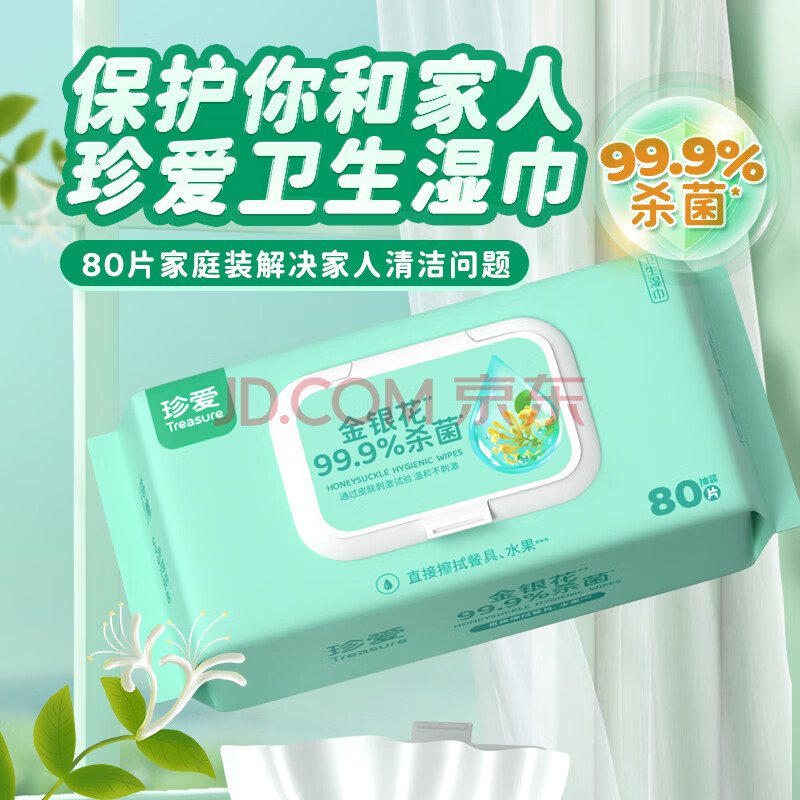 商品相册:珍爱卫生湿巾 99.9%杀菌清洁湿纸巾80片*12包第