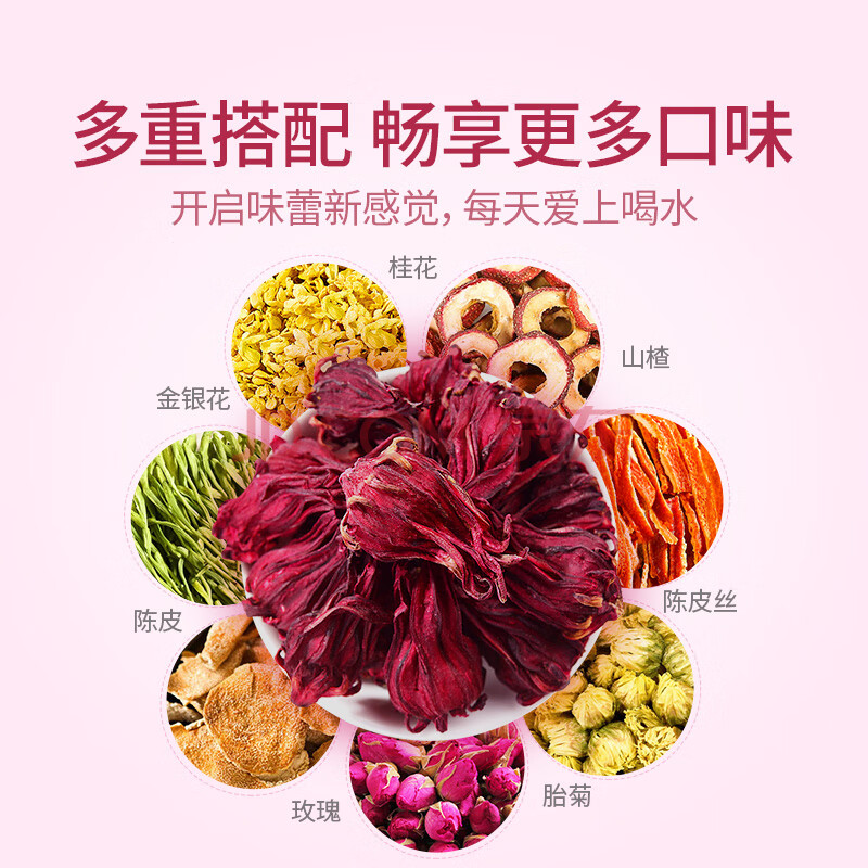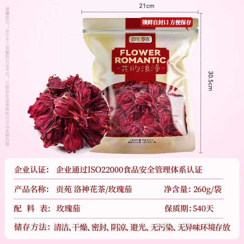 商品相册:贡苑 洛神花茶260g 大朵大份量 优选干玫瑰茄菊花草茶叶酸梅汤女神茶第