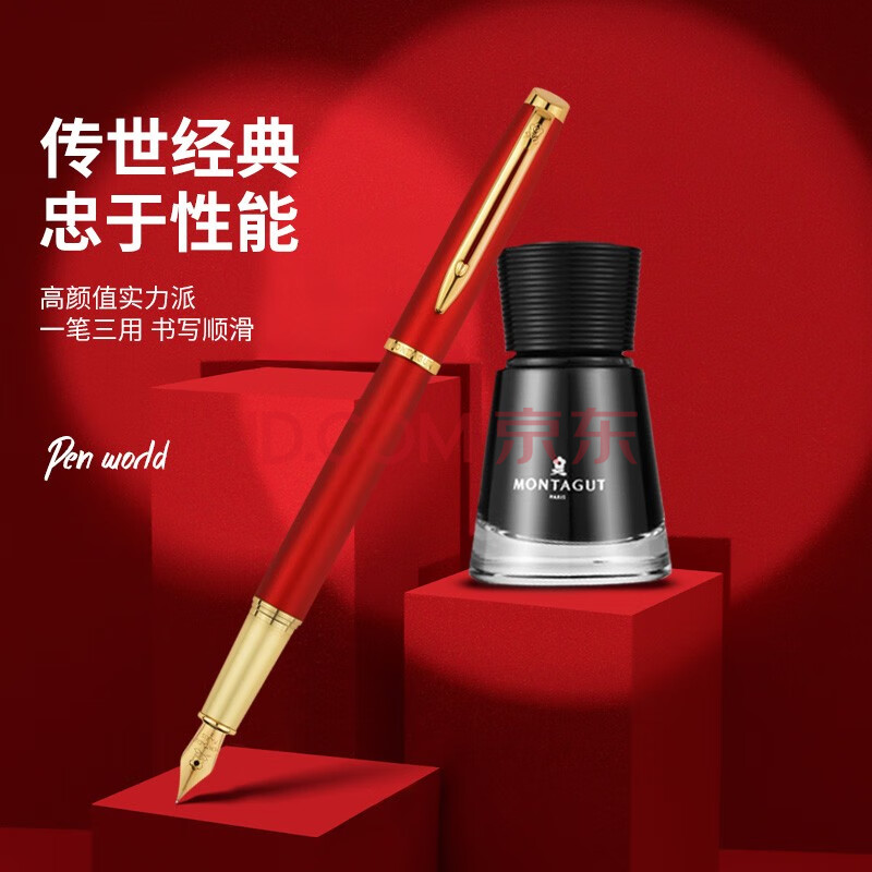 商品相册:梦特娇(MONTAGUT)【马年礼物】钢笔特细笔签字笔男女款办公高档礼盒套装睿智系列2007-1金属红第